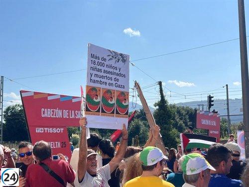 Protesta en Laredo: Multitud ondea banderas palestinas al inicio de La Vuelta.