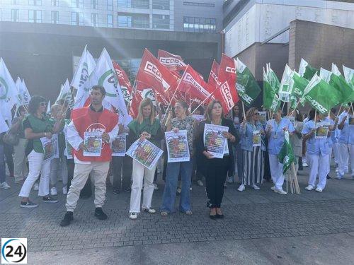 Sindicatos UGT y CCOO protestan en Santander a favor de la ley de jornada reducida.
